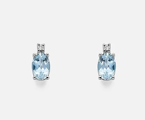 Orecchini in Oro 18kt acquamarina ovale 6x4 e Diamanti ct.0,60