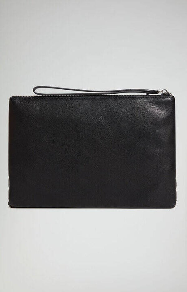 Volume compatto la borsa pochette da uomo Briand realizzata in ecopelle saffiano, un modello dotato di linee minimali. La borsa presenta una chiusura a zip che termina nel cinturino. Sul fronte spicca il logo in metallo. Dimensioni: 27x18x3 cm.