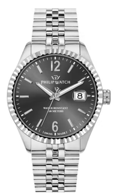 OROLOGIO PHILIP WATCH CARIBE - R8253597112 - Genere : Uomo, Materiale e finitura cassa: Acciaio, Misura cassa: 41.00, Spessore cassa: 8.95, Finitura cassa: Lucido, Satinato, Colore cassa: Silver, Vetro: Vetro zaffiro, Trattamento antiriflesso, Materiale cinturino: Acciaio, Colore cinturino: Silver, Chiusura: Fibbia diver c, Pulsanti e blocco di sicurezza, Swiss made: Sì, Water resistant: 10 atm, Garanzia: Ufficiale 2 anni Philip Watch, Confezione: Originale Philip Watch
