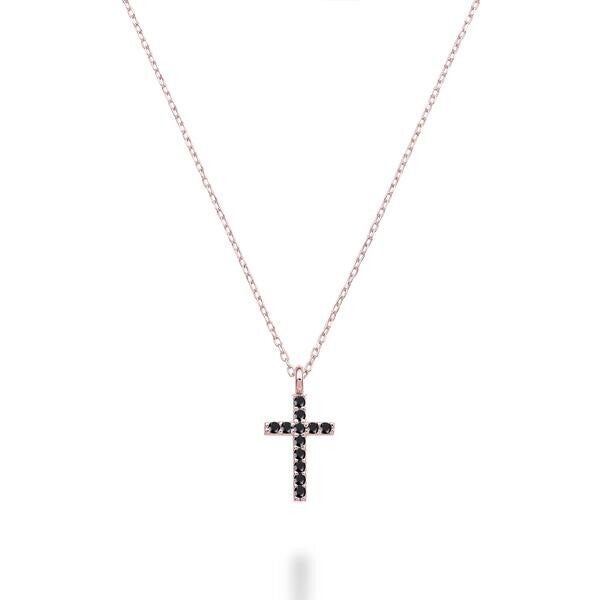 COLLANA 18K CROCE misura 2 oro rosa con spinello nero ct.0,06