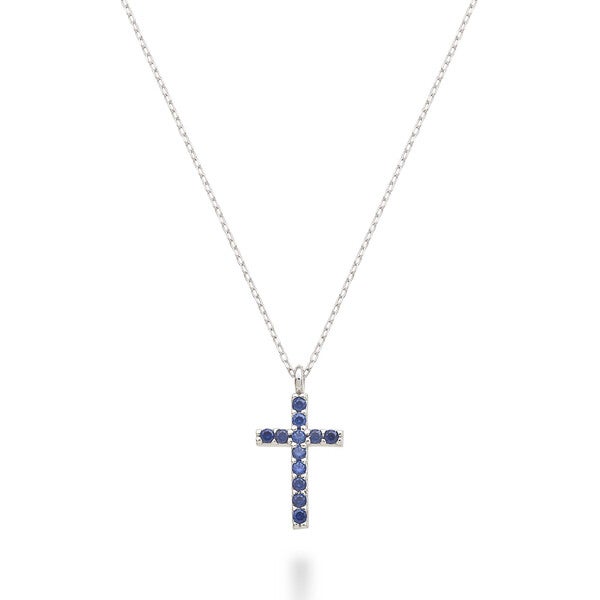 COLLANA 18K CROCE misura 3 (cm.1,4) oro bianco con zaffiri ct.0,15